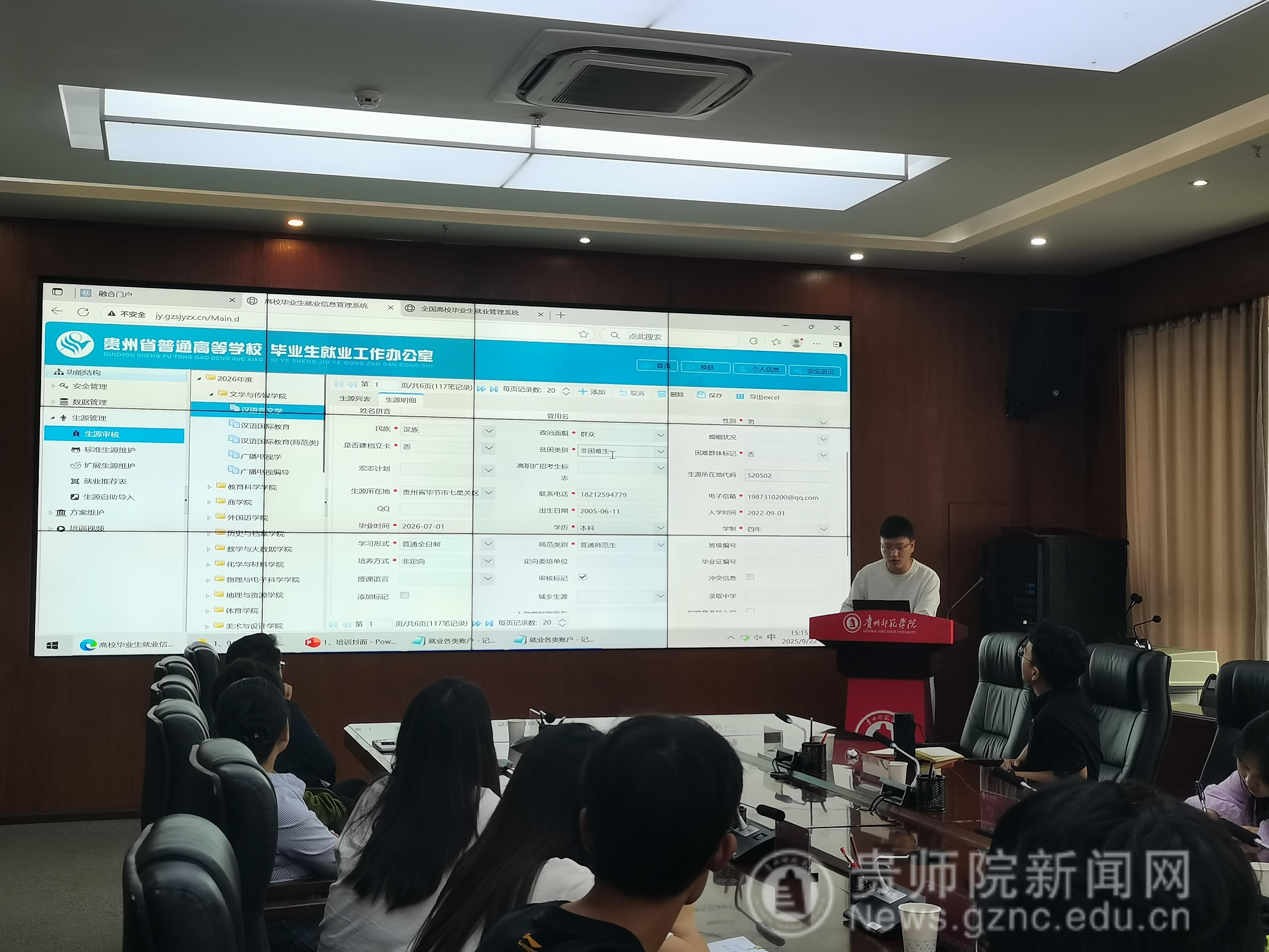 会上,付巧通报了2026届毕业生就业相关工作推进情况。张智勇详细解读了《贵州师范学院2025年大学生“就业能力提升月”活动方案》相关内容。杨开青对“全国高校毕业生就业管理系统”、“贵州省普通高等学校毕业生就业信息管理系统”的操作流程作了详细培训。